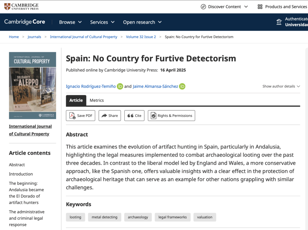 Rodríguez-Temiño I, Almansa-Sánchez J. 2025. Spain: No Country for Furtive Detectorism. International Journal of Cultural Property,…